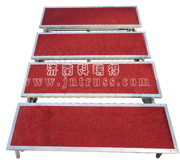 臺(tái)面18mm厚建筑模板承重好,表面鋪有5MM紅色地毯保證整體大方美觀(guān)。